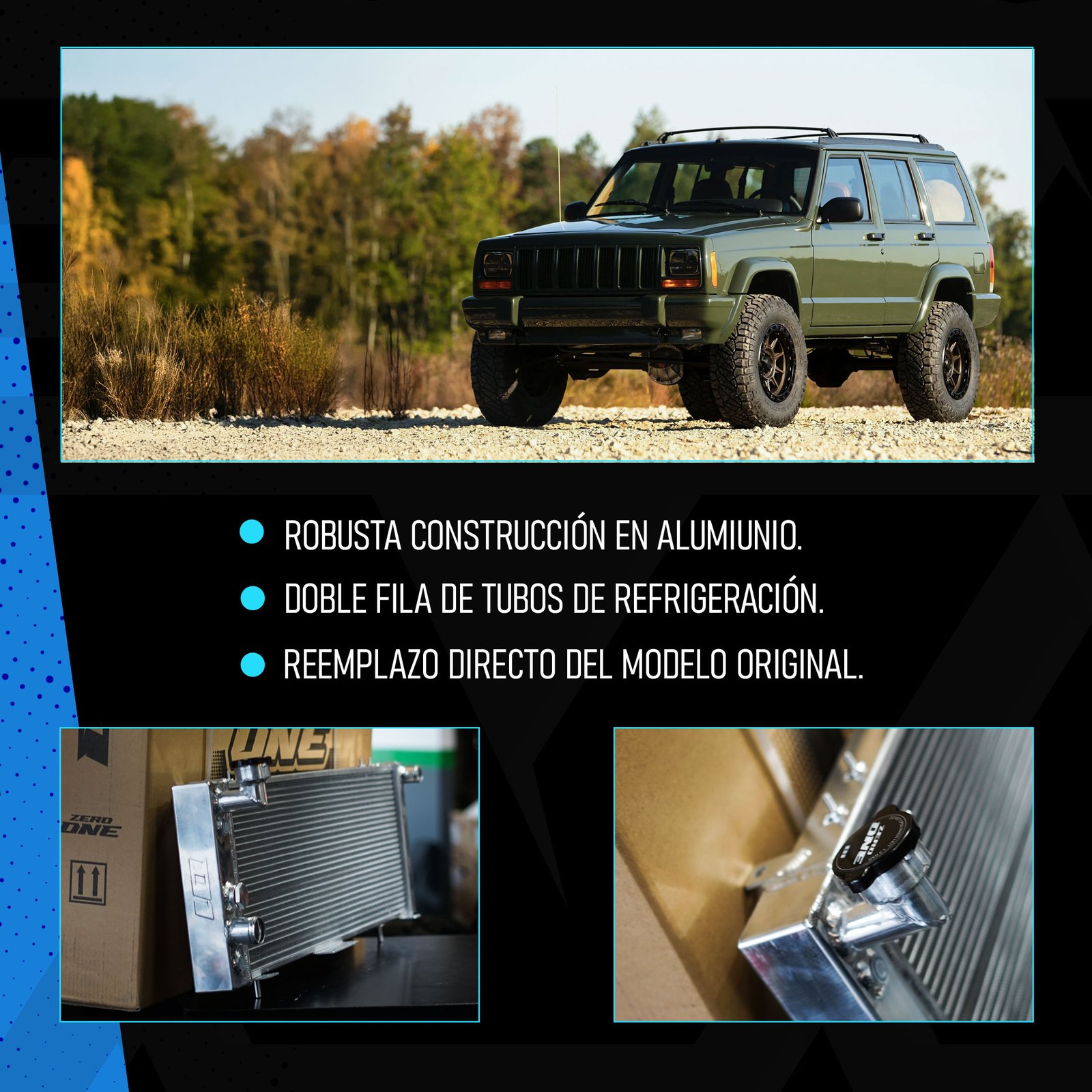 En el mundo del alto desempeño, no hay lugar para puntos medios. Tu motor exige el máximo enfriamiento para entregar su verdadera potencia. ZeroOne nace bajo una premisa simple: crear el radiador definitivo que combine la ingeniería de competición con la facilidad de instalación del equipo original.
